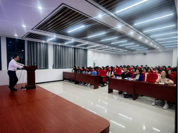讲座由人文与传媒学院副院长、鄂南文化研究中心主任、湖北省铸牢中华民族共同体意识研究基地负责人何岳球教授主持。何教授首先强调了民族团结与铸牢中华民族共同体意识是一项系统工程,需要全社会共同参与;接着简单介绍了咸宁市与湖北省铸牢中华民族共同体意识研究基地落户到我校后,基地通过政治引领、教育厚植、文化浸润、发展凝聚等多维度开展的一些理论宣讲与实践活动。同时感谢廖主任为我校师生传经送宝,校地精诚合作推进我校民族团结教育工作向纵深发展。参加此次讲座的还有湖北省铸牢中华民族共同体意识研究基地的教师和学校2025级100余名新生代表。