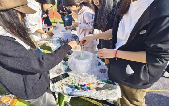 非遗体验区堪称“指尖上的文化盛宴”。在剪纸活动区,同学们巧手翻飞,让剪刀在空中划出优美的弧线,只是顷刻间一副精美的花窗便跃然纸上。漆扇体验区,在大漆与纸扇的融合中,在色彩的晕染之下,美丽的漆扇由此诞生。同学们屏息观摩、亲手尝试,在裁纸、淋糖、拓印的细腻触感中,读懂匠人的坚守与智慧,非遗之美在心底悄然扎根。