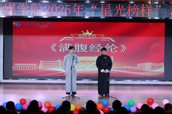 整场大会节奏明快、内容充实,穿插了相声《满腹经纶》、藏族舞蹈《相会》、朗诵《岁末回响,新章序曲》、舞蹈《非人哉》及合唱《我爱你中国》等精彩节目,既展现了学院浓厚的文化氛围,也抒发了学子对祖国的深情礼赞。