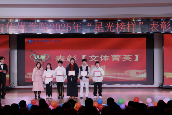 12月27日晚,湖北科技学院人文与传媒学院2025年“星光榜样”表彰大会于温泉校区图书馆报告厅隆重举行。大会以“榜样如星,照亮前行之路;青春如火,点燃奋斗激情”为主题,在庄严而热烈的氛围中拉开帷幕。文传学院领导班子、三办人员、班主任及学生代表共同参加活动。