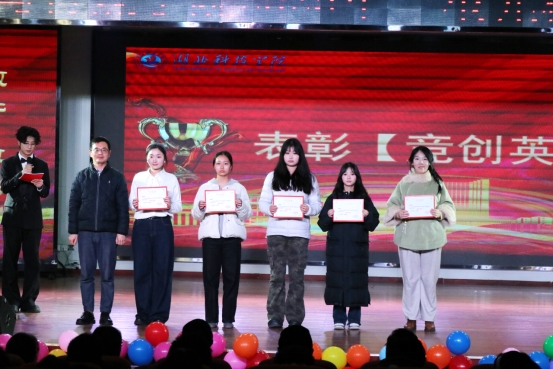 大会在庄重而热烈的氛围中,依次对过去一年在各方面表现突出的先进个人与集体予以表彰。所颁奖项包括“文体菁英”“戎耀青年”“友励之星”“自强之星”“实践能手”“领航标兵”“研学先锋”“竞创英才”以及“荣光团队”,全面覆盖了学生在文体、国防、公益、实践、学术、创新等多维度的卓越表现,生动勾勒出文传学子昂扬向上的群体风貌。尤其在表彰“竞创英才”时,现场通过视频回顾了他们在国家级、省市级多项学科竞赛中的奋斗身影,扎实的专业积累与出色的创新能力,引来台下阵阵赞叹。
