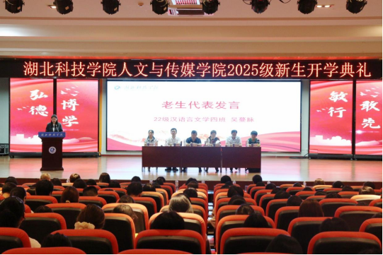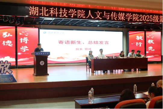 荆楚九月,丹桂飘香;逐梦新程,启航正当时。9月10日上午8时30分,在第41个教师节的特殊节点,湖北科技学院人文与传媒学院2025级新生开学典礼在庄严氛围中拉开帷幕。人文与传媒学院院长郭彧,副院长、鄂南文化研究中心主任何岳球,网络与新媒体专业负责人李永诚,历史学专业负责人张霞,汉语言文学专业文学教研室主任陈静,全体新生班导师、学院三办人员均出席参加,开学典礼由副院长谭辉煌主持。