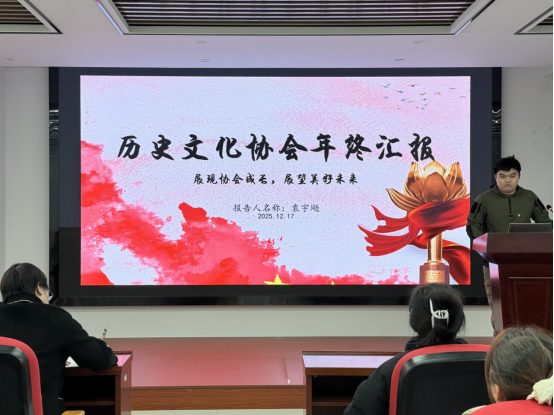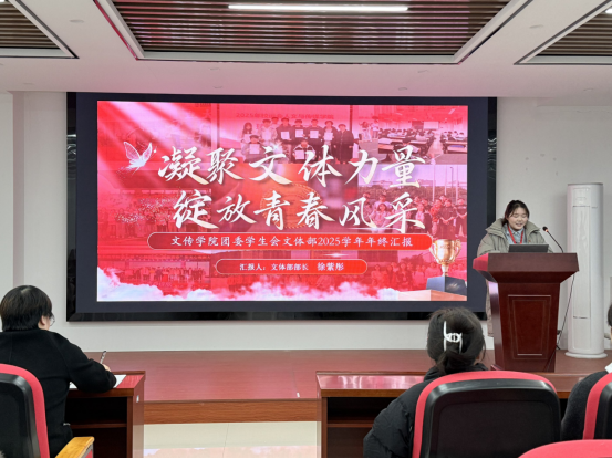 各学生社团首先汇报了年度工作。凤凰文学社、行知学社、历史文化协会、式微汉文化协会、诗词楹联协会依次展示了在文化传播、实践育人、传统传承、艺术普及等方面的丰硕成果与未来规划,彰显了人文与传媒学院多元、活力的校园文化氛围。