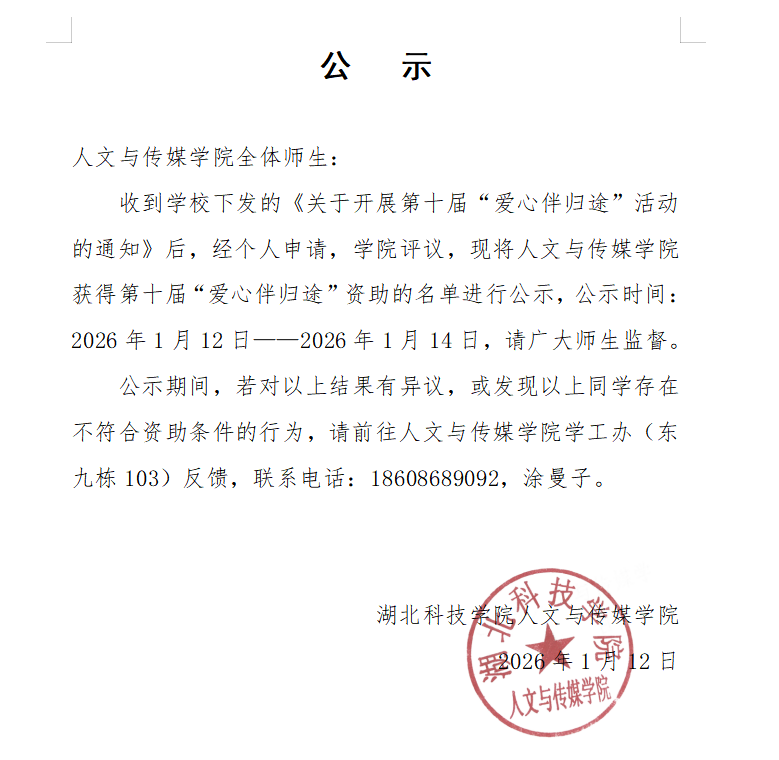 第十届“爱心车票”人文与传媒学院评选结果公示